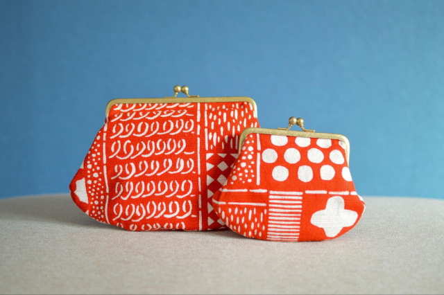しばらくして、よつめさんのがまぐちがセレクトショップに置いてあるのを発見。型染(かたぞめ)の布に真鍮の組み合わせが絶妙で、クラシカルな佇まいと風合いにひと目ぼれ。大小どちらか選べず、結局ふたつともお迎えしました。見るたびにうれしくなる、私のお気に入りです。(ライター・牧亜希子)