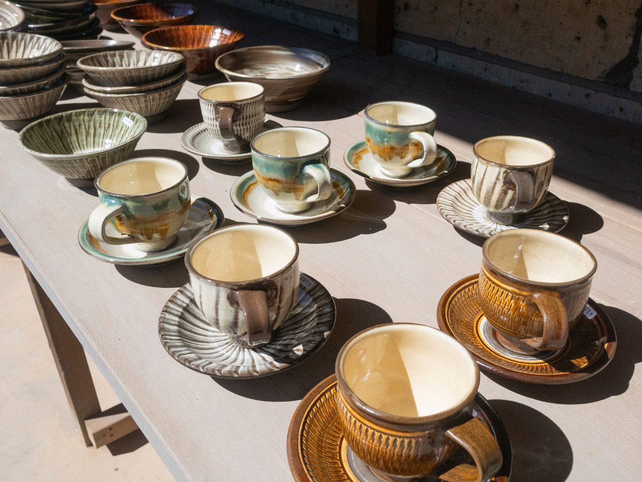 つくる器の種類は幅広く、近年はぽってりとした愛嬌のあるマグカップが人気とのこと。健一郎さんは「軽いほうが扱いやすい器は軽く、重みが必要なものはしっかりと」、用途に応じて重さやバランスを微調整しており、民藝らしい“使う人目線”を大切にしながら、普段使いの器をつくっています。