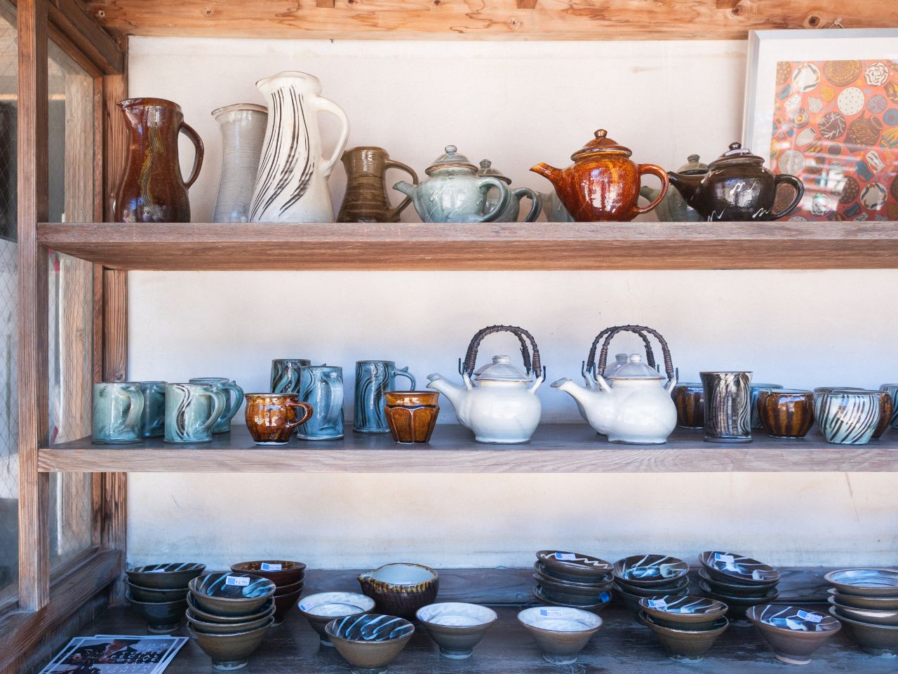 整然とした工房の様子からも、仕事の丁寧さがうかがえます。用途に応じて土の固さを調整するなど、ひとつひとつの仕事に細やかに向き合う姿勢が、器の素朴な美しさにつながっているようです。