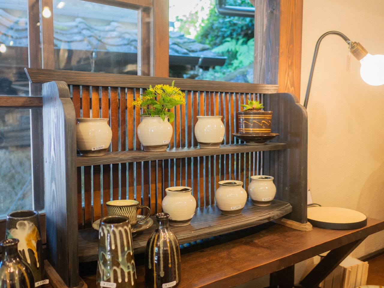 敷地内のショップには、おふたりが制作した器たちがセンスよく並べられており、眺めているだけで「暮らしを豊かにしてくれる道具」のイメージが自然と湧いてきます。インテリアに馴染む色合いとサイズの植木鉢も、人気アイテムのひとつなのだそうです。