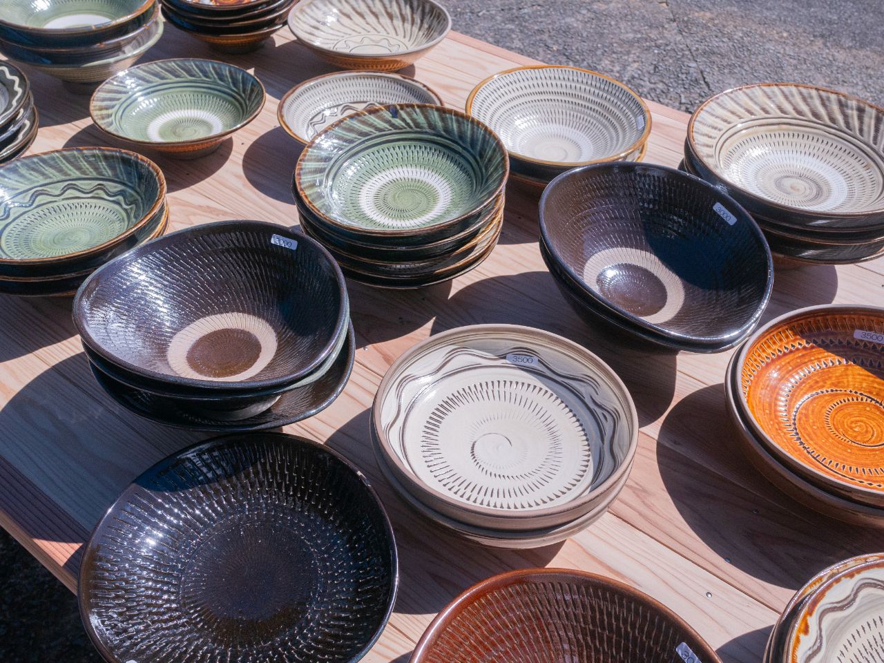 小鹿田焼はそれぞれの窯元で販売しているほか、通販や東京の取扱店などでも購入できます。また、毎年10月の第2週の週末に開催される〈小鹿田焼民陶祭〉では、9軒すべての窯元が大々的に陶器を販売します。