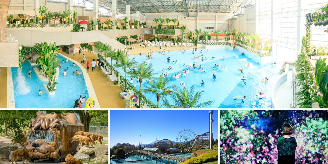 別府のまち並みと別府湾を一望する高台に位置する〈杉乃井ホテル〉は、宿泊だけでなく、多彩な遊びの要素が詰まった大型エンターテインメント施設。最大の魅力は、ホテル内で完結できる充実した全天候型レジャー施設があること。雨の日や猛暑日でも、天候を気にせずアクティビティを満喫できます。